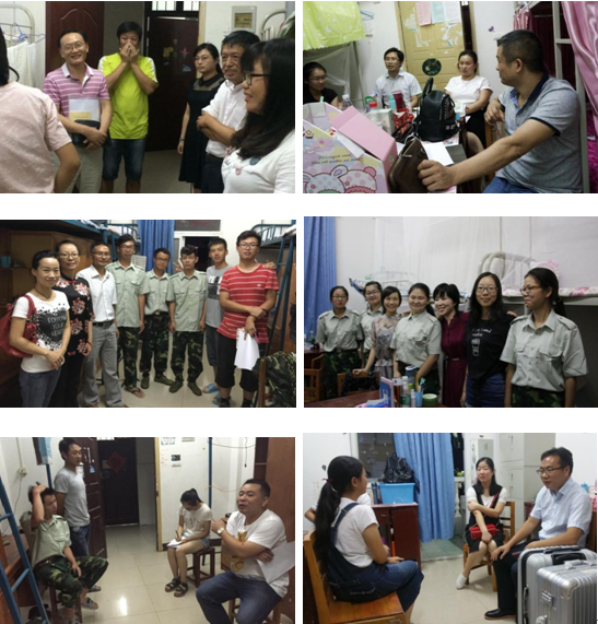走进寝室,老师们认真查看了同学们的生活环境,然后或站立,或围坐,悉心了解同学们的个人经历、家庭情况,关心同学们生活上有什么困难,军训吃不吃得消,伙食习惯不习惯,也让同学们聊聊对大学生活有什么想法,对学校有什么要求建议,或是与同学们分享自己的大学生活经验,以勉励同学们珍惜难得的大学时光,激励起大家努力成为国家有用之才的热情和信心。比如彭书记就谈到同学们在大学期间要注重培养自己正确的核心价值观,“核心价值观的养成绝非一日之功,要坚持由易到难、由近及远,努力把核心价值观的要求变成日常的行为准则,进而形成自觉奉行的信念理念!”张书记则建议同学们不断提升自己的思想境界,“同学们要不断学习、提高认识,努力把自己的思想境界上升到国家民族的高度上来。”他们的话语中都饱含对同学们成长成才的殷殷期望。