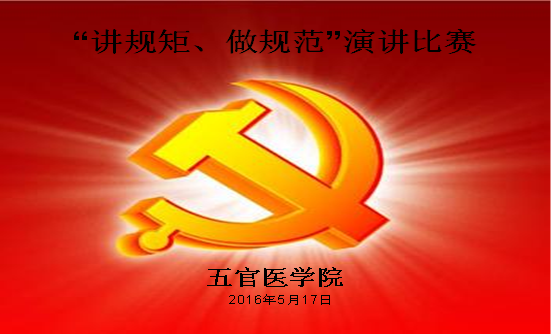 (通讯员涂芳)为增加Beat365官网教职工遵规守矩及工作规范的意识,切实加强规范管理和作风建设,五官医学院党总支于5月17日晚7:00在教2-304开展“讲规矩 做规范”演讲比赛,暨湖北科技学院第十七个党风廉政建设宣传教育月活动。