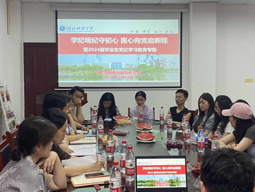 2019级眼视光医学班毕业生党员代表余慧婷同学表示,今天的党纪教育是学生时代最后一次党课。对于即将迈入社会的毕业生而言,党纪教育为我们的行为提供了明确指引。2019级口腔医学班毕业生党员代表毛唯好同学表示,将不忘党员“第一身份”,切实做到学纪、知纪、明纪、守纪,在思想上、行动上践行“入党一刻,奋斗终身”的不懈追求。