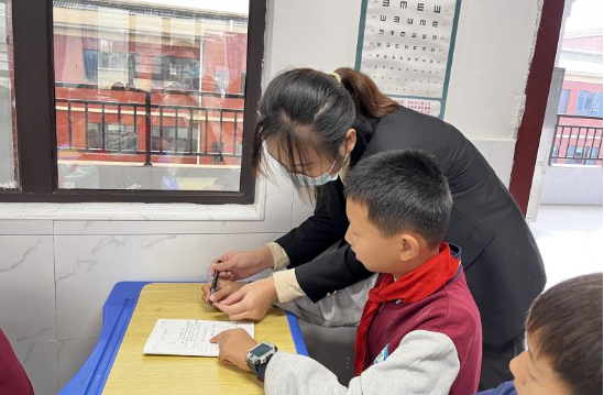 宣讲会上Beat365官网学生段会杰为实验小学五年级(4)班的同学们做了近视防控科普宣讲,讲授了眼睛的重要性以及如何保护眼睛等相关知识,并纠正同学们错误地握笔姿势。
