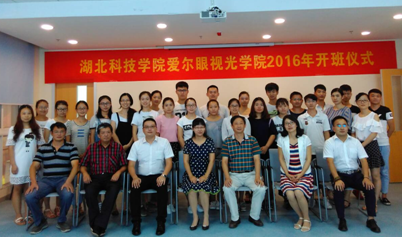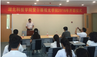 (通讯员 刘倩、雷婷)金秋送爽,丹桂飘香。2016年8月30日下午3:00,湖北科技学院爱尔眼视光学院14级眼视光专业开班仪式在爱尔眼视光学院11楼隆重举行。五官医学院领导周燕红、范杉、操盛春、佘同辉,咸宁爱尔眼科医院CEO石杰,以及眼视光学教学团队张晓斌主任、教师代表、咸宁爱尔眼科医院视光部主任郭立烨、眼视光学2014级班主任雷婷老师和全体学生参加了开班仪式。仪式由五官医学院党总支副书记兼副院长佘同辉主持。