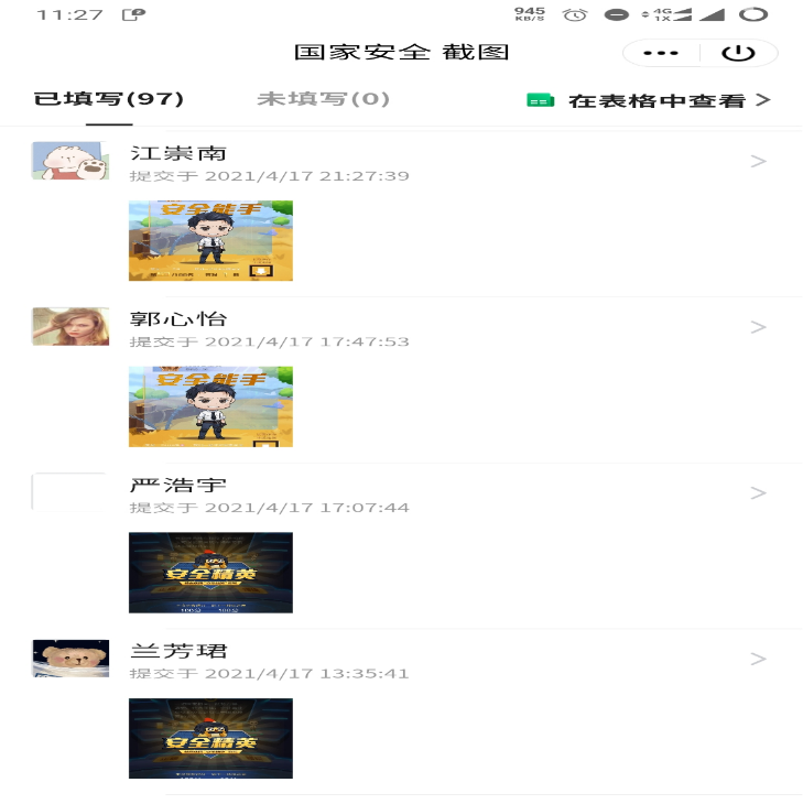 三、公开承诺活动。4月15日晚上,各班在学习“千万师生同上一堂国家安全教育课”后,开展了“国家安全,人人有责”公开承诺活动。学生们感触颇深,表示今后要提高国家安全意识,积极向周边的亲人、朋友普及国家安全知识,树立“国家安全,人人有责”的理念,防患于未然。此次活动,增强了师生对国家安全教育的认知以及维护国家安全的意识,培养了师生自觉投身国家安全的责任感和使命感。