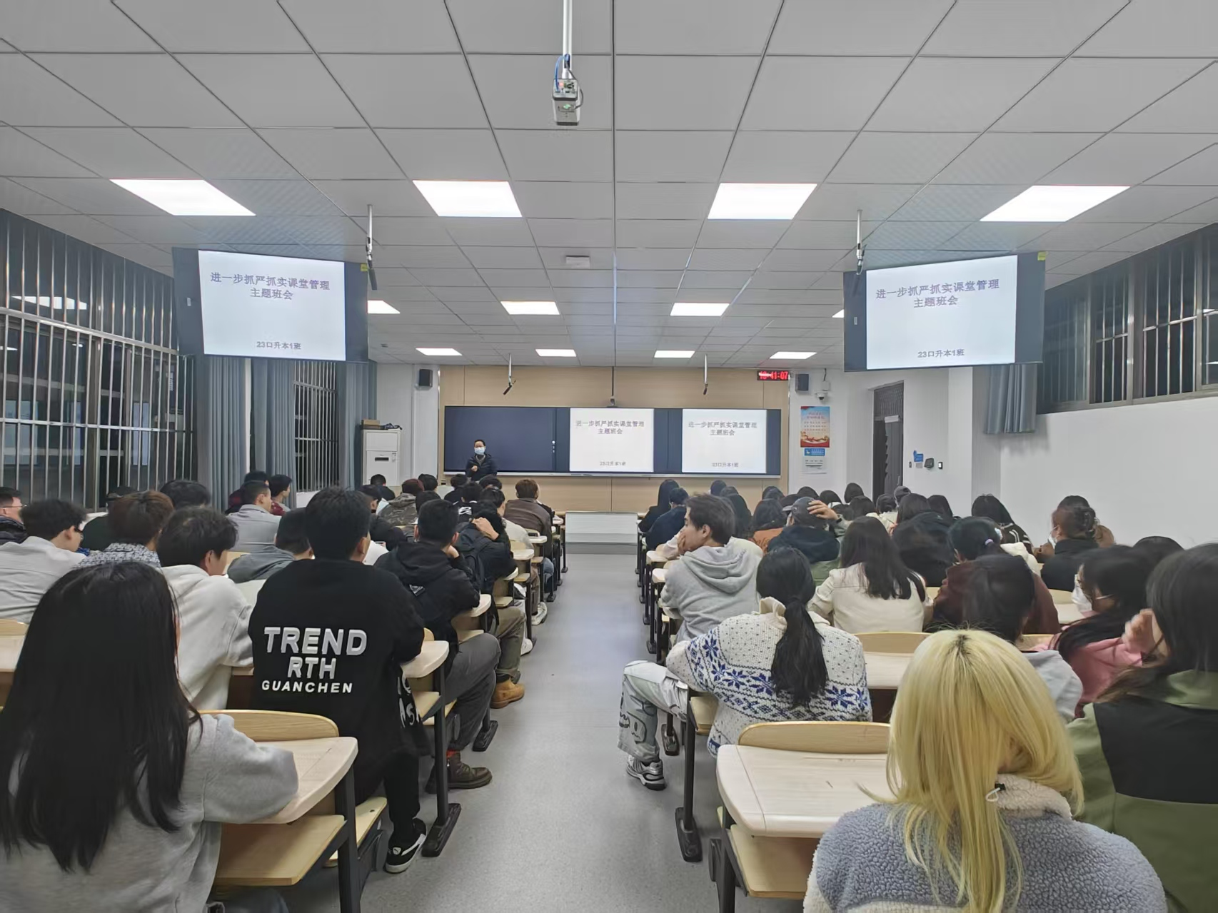 班会伊始,各班班主任向同学们深刻阐述了“纪律”“规范”的重要意义,强调养成良好的学习习惯是提升大学生综合素质的重要方面,不仅关乎个人的成长与发展,更对学校学风的整体构建起着至关重要的作用。