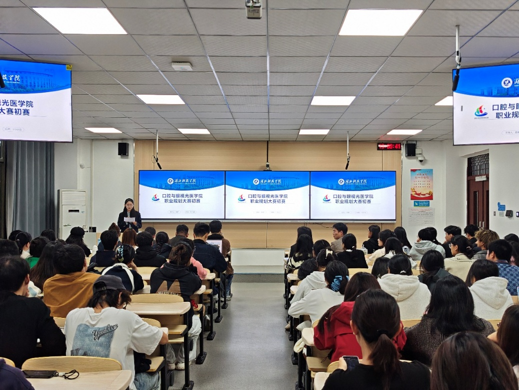大赛基于对学生多元化发展的需求,特设“就业”与“成长”两个赛道。参赛选手依次登台,结合PPT演示,就自我认知、职业环境分析、职业目标定位、具体行动计划及评估调整方案进行了系统阐述。选手们路径规划清晰,目标设定务实,充分展现了五官医学院学子勤于思考、善于规划、勇于追梦的优良精神风貌。