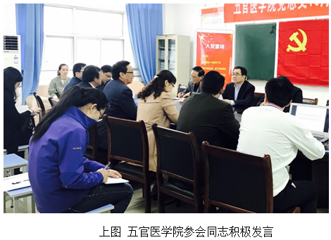 4月6日下午,党委书记田辉玉同志在学校办公室陈睦富主任、孙智副主任的陪同下,对五官医学院进行了调研,并实地考察了爱尔眼视光学院。五官医学院院长周燕红同志作了《三驾马车齐奋蹄,转型发展谱新篇》的主题汇报,党总支书记范杉及其他班子成员、三办主任、学科负责人、教研(实验)室主任等参加了调研会。