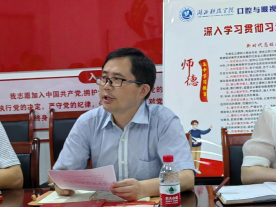 (通讯员:黄红) 为深入开展学习贯彻习近平新时代中国特色社会主义思想主题教育,根据《湖北科学院《2023年度师德集中学习教育活动实施方案》要求,7月11日,口腔与眼视光医学院召开了师德集中学习教育大会。会议由党委书记黄彬主持,全体教职工参加了会议。