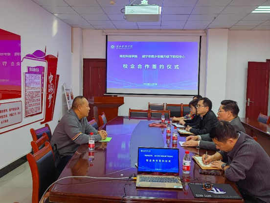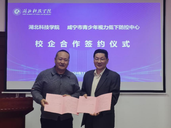 (通讯员 黄红 审稿 黄玉婵) 11月7日上午,湖北科技学院与咸宁市青少年视力低下防控中心在医药楼3栋五楼会议室举行了校企合作的签约仪式,这标志着双方在产教融合、校企合作领域迈出了具有里程碑意义的一步。仪式由院党委书记黄彬主持,学院领导班子、咸宁市青少年视力低下防控中心负责人胡亚洲、三办主任参加。