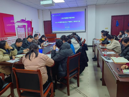 (本网讯:王艳) 1月8日,Beat365唯一官方网站召开2024年度科级及以下教职工考核大会、师德师风考核暨寒假假期工作布置会。学院领导班子、全体教职工参加会议,会议由党委书记黄彬主持。