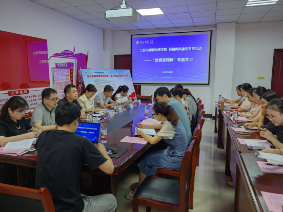 会议伊始,黄玉婵副院长作专题领学,传达了习近平总书记关于教育的重要论述精神,并带领全体教师深入学习《新时代高校教师职业行为十项准则》等文件。并强调,全体教师应深刻领会“教育家精神”的核心要义,将其内化于心、外化于行。学习结束后,全体教职员工庄重地签订了《湖北科技学院教师师德承诺书》,作出了对教育事业和职业道德的坚定承诺。
