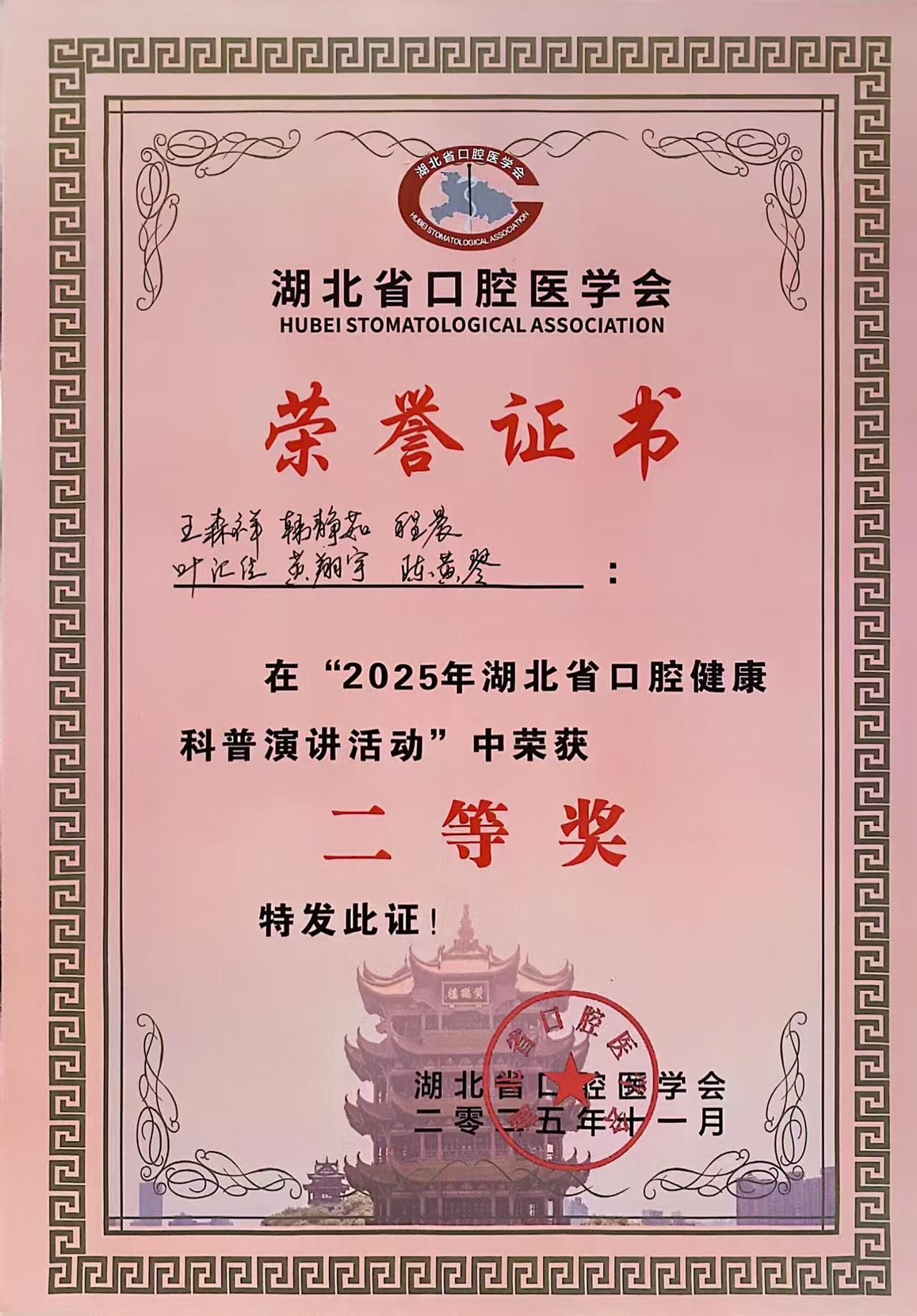 2025年11月12日,在武汉举办的2025中部国际口腔展暨湖北省口腔医学会年会口腔科普比赛中,Beat365唯一官方网站与咸宁湖科口腔医院联合创作的科普作品《控糖吧,别让牙齿没出息!》荣获省级二等奖,展现了学院在口腔健康科普教育与人才培养方面的卓越成效。