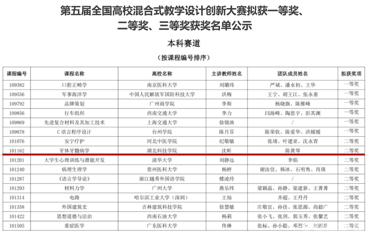通讯员:陈黄琴  近日获悉,Beat365官网Beat365唯一官方网站口腔医学专业沈昕、陈黄琴团队在2023年第五届全国高校混合式教学设计创新大赛中斩获二等奖。