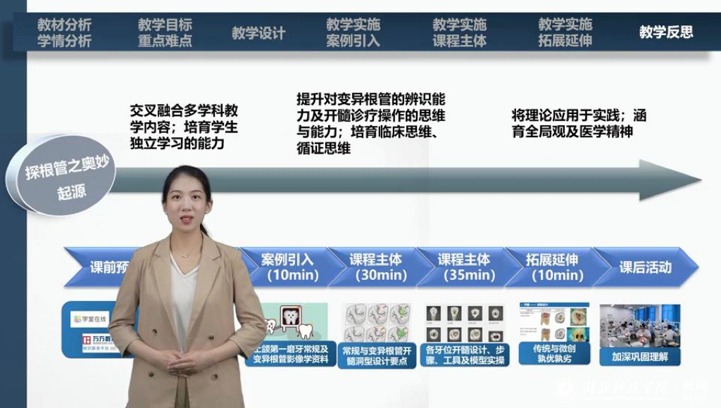 在学校教师发展中心及院部领导的支持和指导下,由沈昕老师担任主讲教师的参赛课程《牙体牙髓病学》巧妙突破教学重难点,凭借科学的课程设计、创新的教学理念及丰富的教学内容获得大赛评委的一致好评。