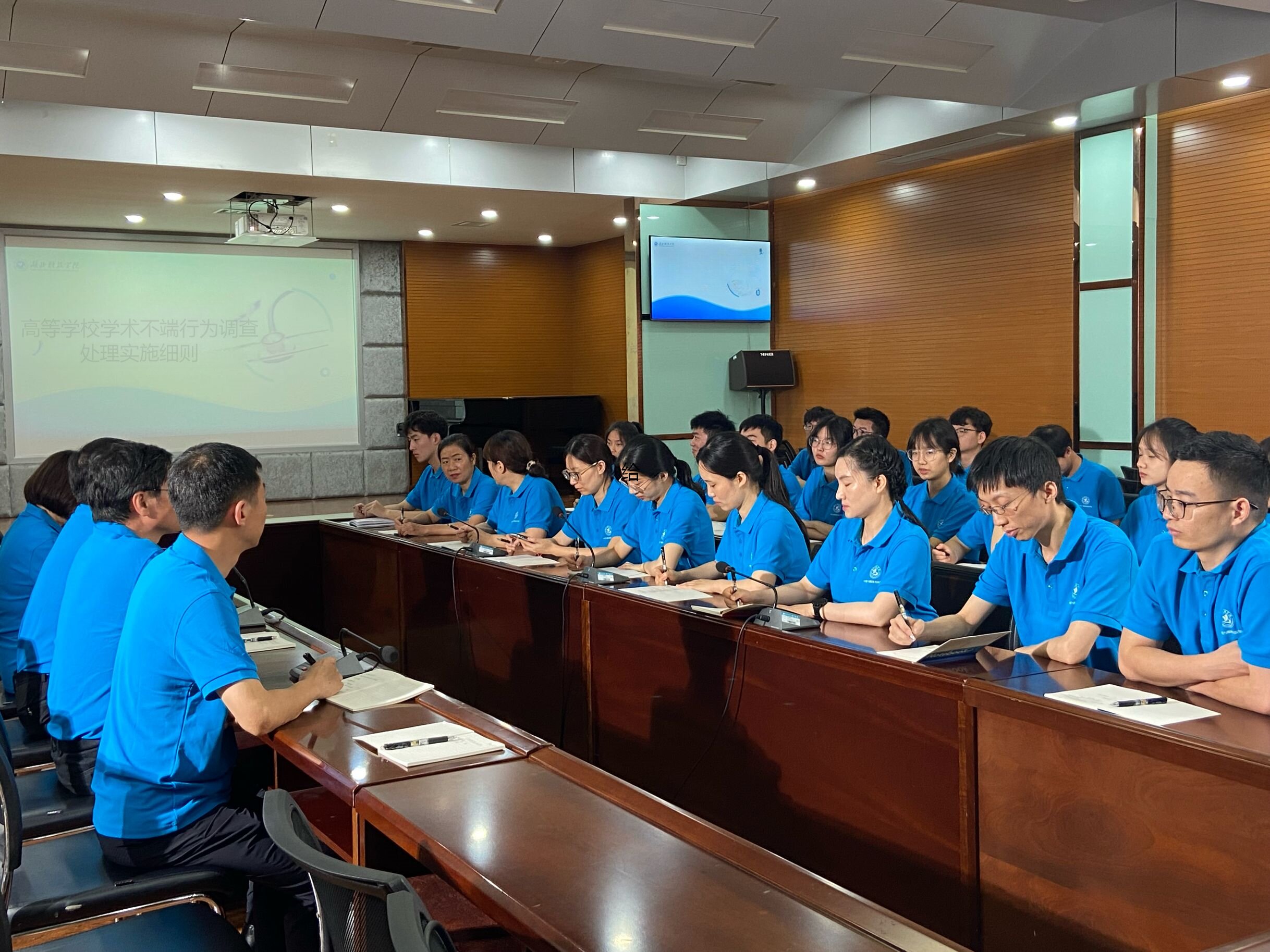 首先,科研副院长熊丽介绍了会议背景,传达湖北省教育厅相关文件精神,并学习《教育部关于加强高等学校科研诚信建设和学术不端治理的指导意见》(教科信〔2024〕2号)和《高等学校学术不端行为调查处理实施细则》。