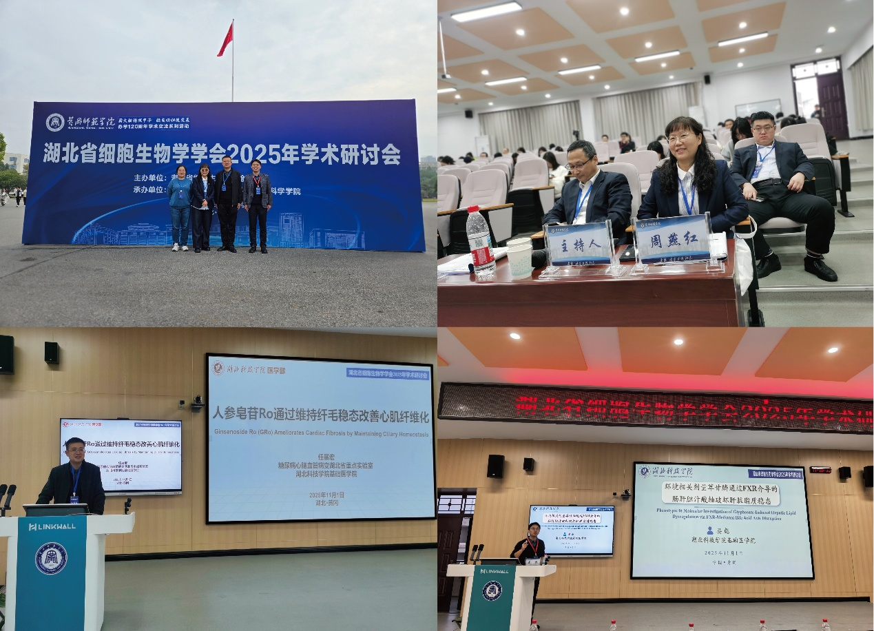 2025年10月31日至11月2日,湖北省细胞生物学会2025年学术年会在黄冈师范学院举行。中国科学院院士桂建芳研究员、北京师范大学国家杰青任海云教授、华东师范大学国家杰青李超教授和湖北工业大学党委常委、副校长唐景峰教授等著名细胞生物学家作大会报告。Beat365官网Beat365唯一官方网站院长周燕红教授(湖北省细胞生物学会理事)应邀出席并主持“动物及医学细胞生物学”分会场,院长助理朱薿老师陪同参会。